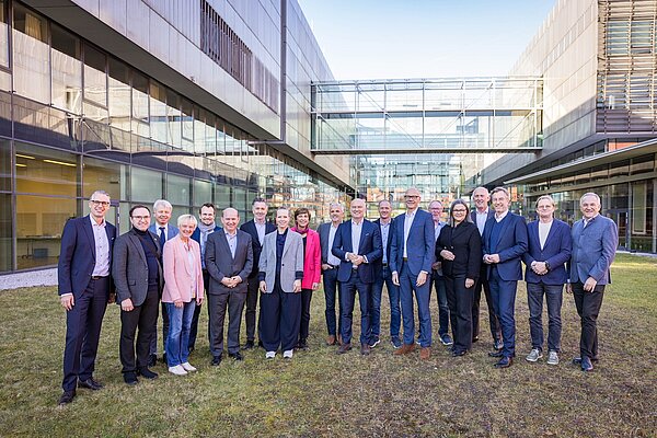 Den Abschluss der Reise bildete ein Besuch der Delegation an der Fachhochschule Salzburg, bei dem sich die Präsidentinnen und Präsidenten der bayerischen HAWs/THs mit Mag. Elmar Pichl, dem Leiter der Sektion 1 im österreichischen Bundesministerium für Frauen, Wissenschaft und Forschung (BMFWF), sowie mit Vertreterinnen und Vertretern der Österreichischen Fachhochschulkonferenz (FHK) austauschten. Im Zentrum des gemeinsamen Diskurses standen sowohl ein Überblick zu den unterschiedlichen Hochschulsystemen in der jeweiligen Wissenschaftslandschaft als auch ein Erfahrungsaustausch zum Promotionsrecht für die HAWs/THs und Überlegungen zur Intensivierung von Kooperationen in verschiedenen Forschungsfeldern. Abschließend erhielten die Gäste eine Führung durch die FH Salzburg, an der aktuell rund 3.400 Studierende praxisnah und anwendungsorientiert in insgesamt sechs verschiedenen Departments – von Business und Tourism über Gesundheitswissenschaften bis hin zu Information Technologies and Digitalisation – ausgebildet werden.