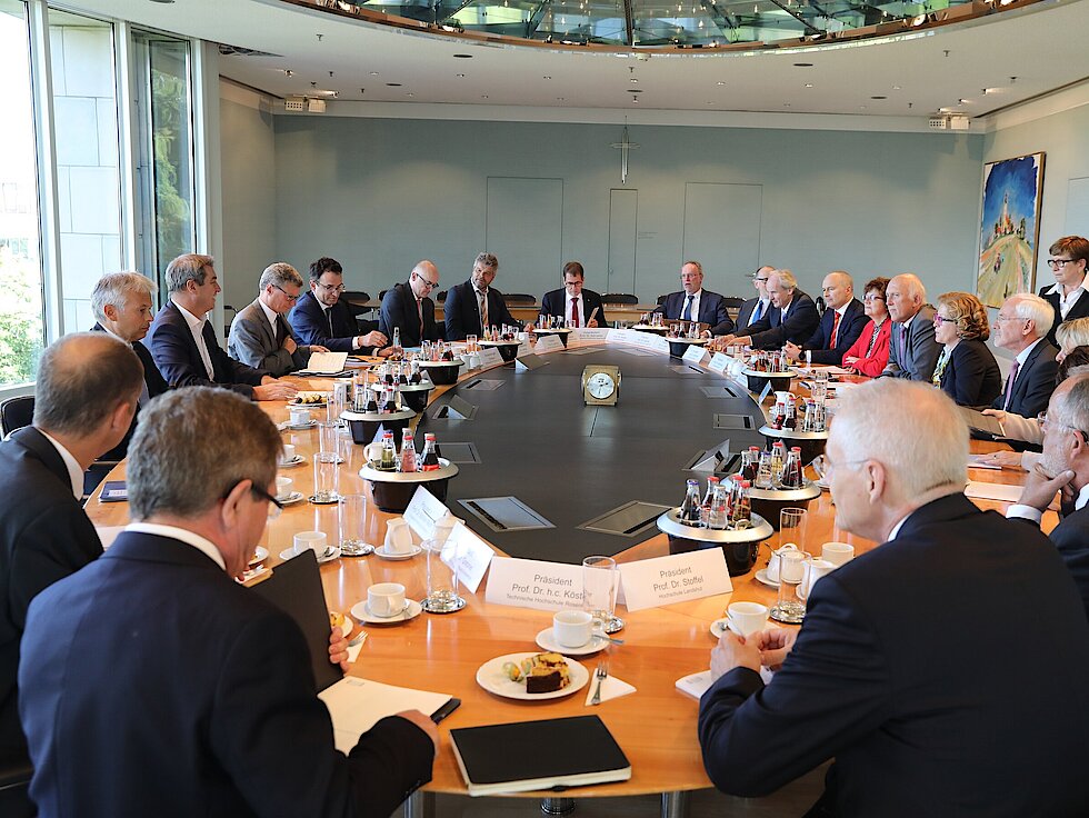 Bei dem Austausch in der Bayerischen Staatskanzlei hoben die Präsidentinnen und Präsidenten die Bedeutung des Hochschultyps HAW für den Wissenschaftsstandort Bayern hervor. Insbesondere im Bereich des Forschungs- und Wissenstransfer haben die bayerischen Hochschulen für angewandte Wissenschaften (HAW) mit ihrem Erfolg im Bund-Länder-Wettbewerb „Innovative Hochschule“ ihre Stärke klar unter Beweis gestellt. „Für eine anwendungs-, innovations- und praxisorientierte Forschung in Zusammenarbeit mit der Wirtschaft und insbesondere den KMU benötigen die HAWs in Bayern eine bessere Unterstützung und Finanzierung von forschenden Professorinnen und Professoren“ führte Prof. Dr. Uta M. Feser, die Vorsitzende des Verbandes der bayerischen Hochschulen und Präsidentin der Hochschule Neu-Ulm, aus. „Damit Bayern bestens auf die Herausforderungen der Zukunft und die Transformation der Gesellschaft vorbereitet ist, müssen heute die Weichen gestellt werden“ ergänzte sie. Dazu seien auch ein Ausbau des Studienangebots im IT-Bereich sowie eine Flexibilisierung der Hochschulen zentral.