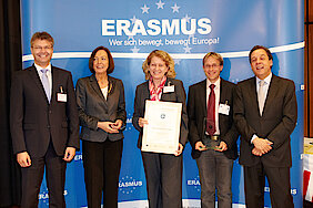 Die Preisverleihung fand am 14. Juni 2012 in Bonn statt. Prof. Dr. Margret Wintermantel, Präsidentin des DAAD, Christian Sterz vom Bundesministerium für Bildung und Forschung und Xavier Prats Monné von der Europäischen Kommission überreichten Prof. Dr. Uta M. Feser, HNU- Präsidentin und Christian Renner, Leiter des International Office, das Zertifikat. „Das Siegel bestätigt uns, dass wir einen sehr guten Weg der Internationalisierung gehen“, so Prof. Dr. Uta M. Feser. Neben zwölf weiteren deut- schen Hochschulen und einem Konsortium zeichnete der DAAD die HNU für ihre besonderen Leistungen zur Förde- rung der internationalen Mobilität aus.