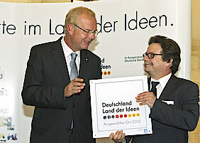 Mit dem Analysegerät „Quicklyzer – Spürnase der Umwelt" von Prof. Dr. Alfred Lechner, Fakultät Allgemeinwissenschaften und Mikrosystemtechnik, gehört die Hochschule Regensburg (HS.R) zu den „365 ausgewählten Orten im Land der Ideen 2012“. Dazu hat Prof. Dr. Lechner anlässlich eines Empfangs in der Staatskanzlei des Landes Bayern vor Kurzem die offizielle Ehrentafel des Wettbewerbs „365 Orte im Land der Ideen 2012“ von Staatskanzleichef Thomas Kreuzer überreicht bekommen. Die offizielle Preisverleihung an der HS.R findet am 24. Oktober 2012 statt.