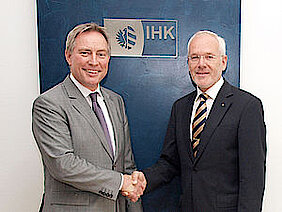 Der Hauptgeschäftsführer der IHK Nürnberg für Mittelfanken, Markus Lötzsch, und der Präsident der Ohm-Hochschule, Prof. Dr. Michael Braun, gaben heute den Abschluss eines entsprechenden Anrechnungs- verfahrens bekannt. "Berufstätige, die ein Studium aufnehmen, bringen viel Erfahrung und wichtige Vorkenntnisse mit und sind hoch motiviert. Das muss honoriert werden", sind sich die beiden einig. "Für IHK-Betriebswirtinnen und IHK-Betriebswirte, die am OHM Betriebswirtschaft studieren - was natürlich auch berufsbegleitend möglich ist - reduziert sich die Studienzeit deutlich."