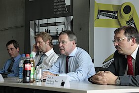 "Dieses Studium ist kein Honigschlecken", stellte Dr. Heubisch nach dem Gespräch mit den Studierenden fest. Die Studierenden berichteten ihm davon, dass sie in den nächsten vier Jahren auf einen Großteil ihres Urlaubs verzichten würden. Deutlich wurde auch, dass ohne Rückhalt der Familie solch ein Studium nicht realisierbar ist. "Mathematik ist ein Knackpunkt. Da müssen wir dran arbeiten", sagte Dr. Heubisch nach der Präsentation der ersten Prüfungsergebnisse der Studierenden. Unterstützung bieten hier Vor-Kurse und vor allem Tutorien an der HS.R, so die Meinung der Studierenden. Bestätigt sah sich Dr. Heubisch in seiner Annahme, dass auch bei dem berufsbegleitenden Studienangebot persönlicher Austausch und Präsenzzeiten gewünscht sind.